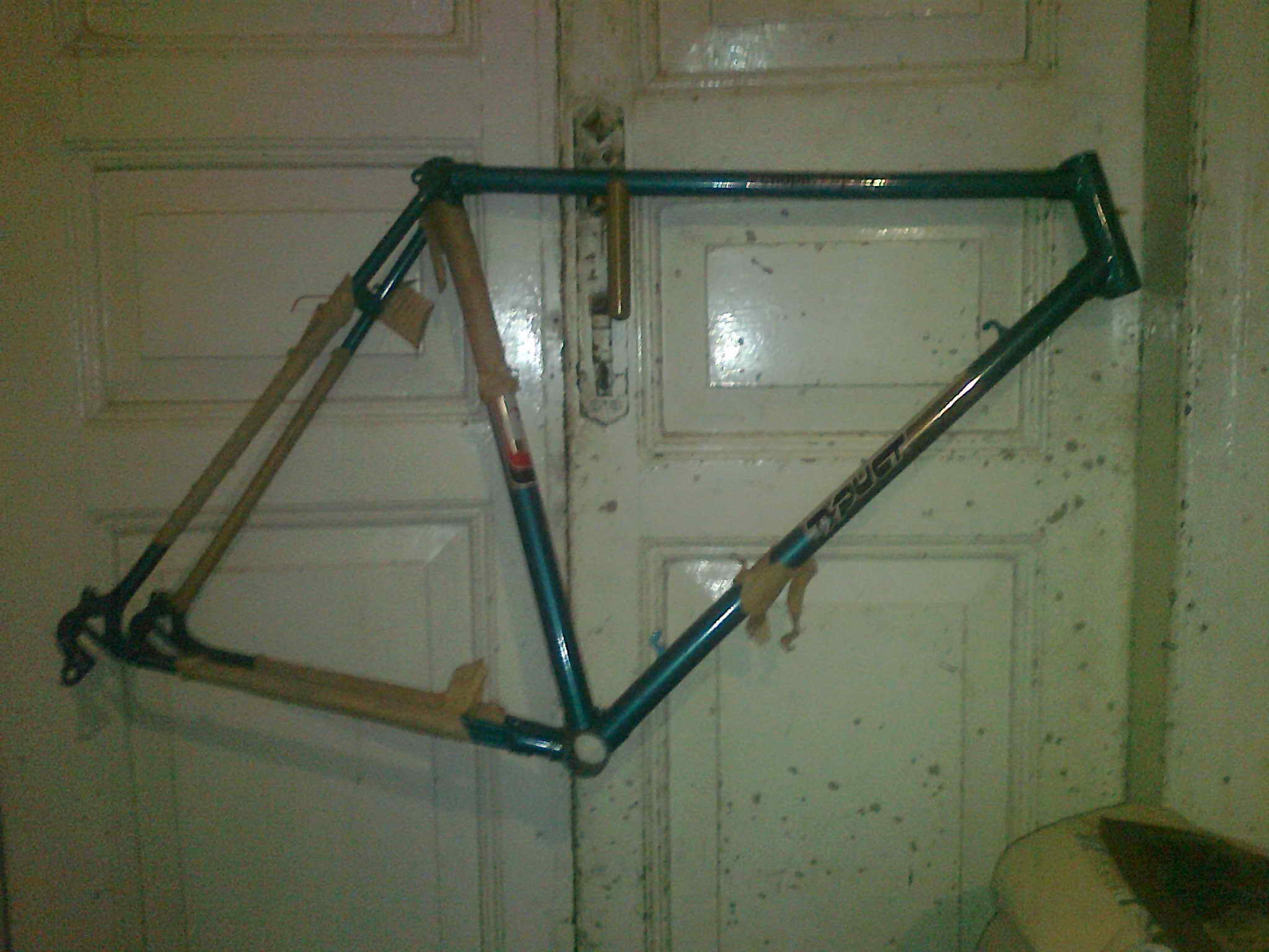 И самый хит этой коллекции новая рама старт-шоссе "турист" 1989г., даже резьба в каретке не нарезана(полная свобода фантазии нового владельца по поводу ее нарезки). Можно не только использовать как старт шоссе что выше, а еще и гвозди забивать, и даже убить ею лубого(даже Валуев не устоит - настоящая булава). 250грн