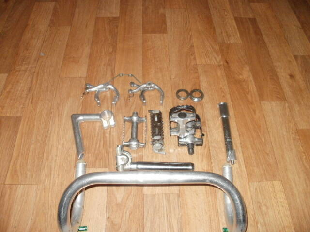 Рама хвз сш рост 58см,77г.в. без вилки,рулевая в комплекте-100гр.Седло кожа клеймо(тульская обл.з-д техкожизделий)-100гр.Седло хвз пластик-70гр.Баран хвз шоссе узкий 36см-60гр.Вынос хвз длина 90мм под руль 26мм,без болтов,резьба целая-100гр.Крабы хвз (самые маленькие,от центра оси до начала крепления колодок 42мм)некомплектнные без осей с 1-ой пружиной-60гр.1шт.Граната kelloy -60гр.Педали хвз(алюсталь)-30гр.Педали под туклепсы прбег 200км-60гр.Подседел 25мм общая длина 18см-20гр.Сумка на поясницу GAS,2 отделения вместительнная и удобная-100гр.тел.0630523973