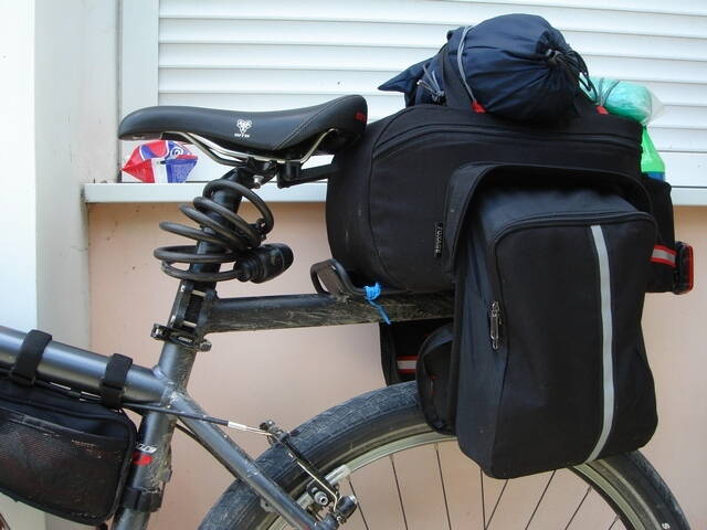 Насчёт спинного рюкзачка я бы не был так категорично против - сам ехал Арабатку со спинным рюком (~10 кг) и багажной сумкой с небольшими боковыми карманами (~8 кг) на консольном багажнике.Не помню, чтоб спина особо уставала, не больше, чем на обычных покатухах.