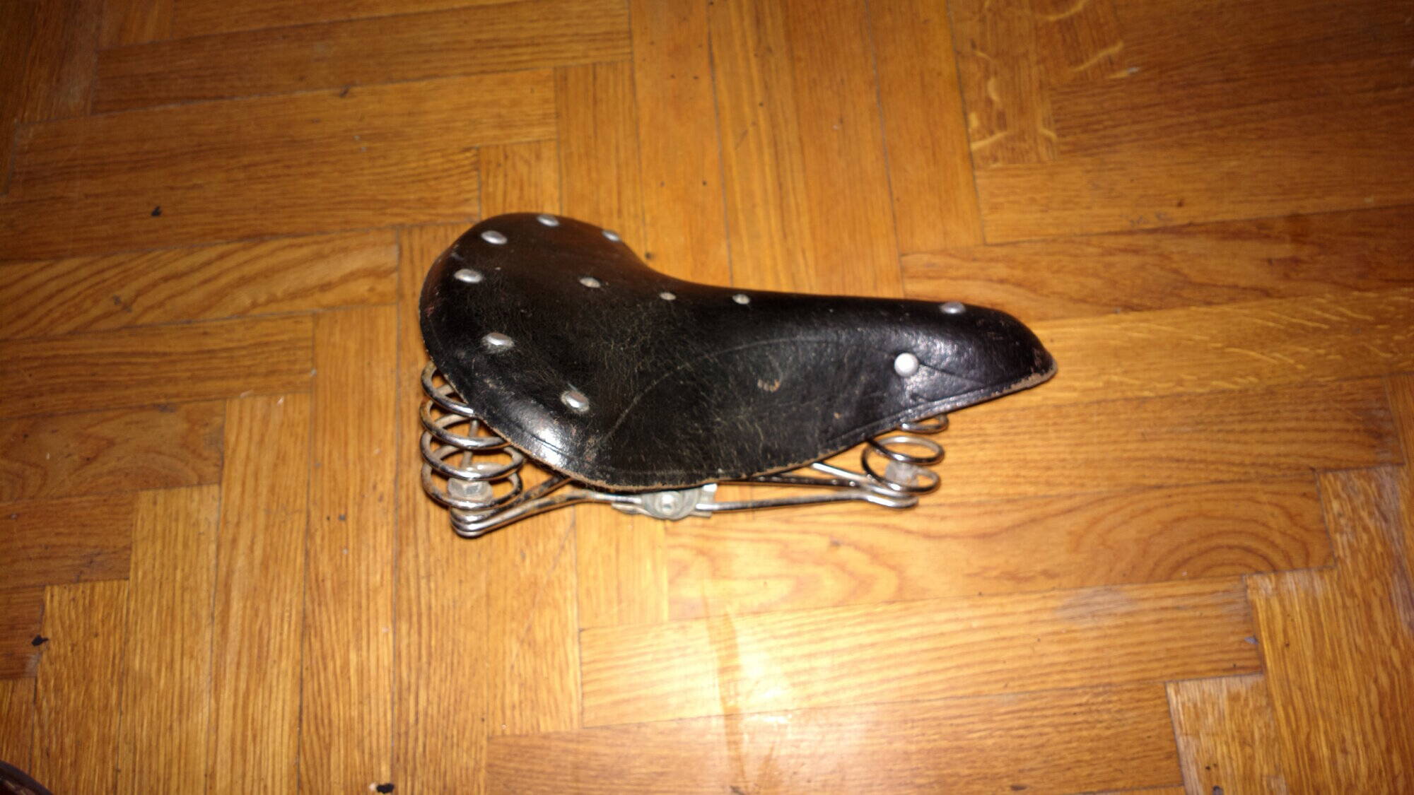 На данный момент по старичкам работы не ведутся (пока разбираюсь с мешком запчастей на СШ и седлом для него же, если оно труп, то надо искать другое), но В-33 в почетном приоритете. Для него один хороший человек подарил мне вот такое вот симпатишное седло, пусть оно и не родное, но мне кажется больше в тему, чем брукс, который я планировал изначально как замену седлу, которое я вряд ли смогу отреставрировать к ближайшему сезону.