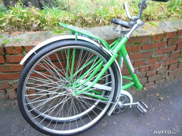 Оригинальные части (щиток цепи, крылья, руль, вынос, заднее колесо - на хранении, седла и подседельного не было). Пришлось научиться править суровые восьмёрки на обоих стальных ободах и менять спицы, но заднее колесо поставил пока от современного складного Форварда (втулка Hi-Stop, двойной обод), переднее и заднее - оригинальные полностью (велонипель - поменял резинку), включая камеры тех лет, что удивило).