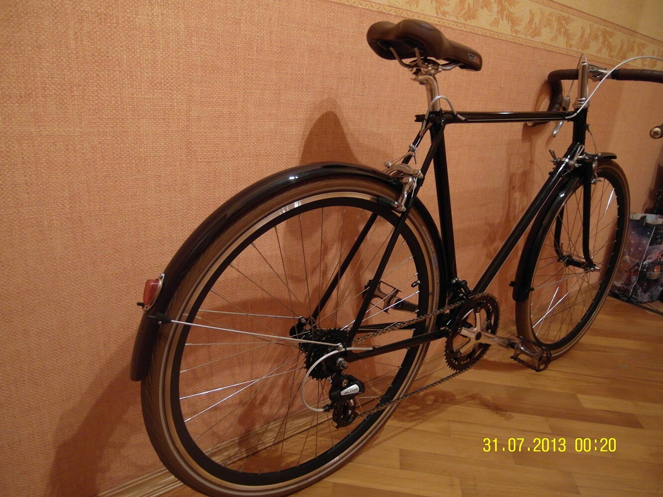 Не скажет. на самом деле спасибо за участие. Т.к В 555 2шт, то посмотрев и выслушав решил вилку с синего перекрасить в красный ( хорошо что родная красная краска осталась), а серебристую вилку отдать синему велосипеду. И будет красный, как стартово и задумывался. как на первой фото с крыльями. Вот только резина 25-ая не совсем для туринга, но ее оставлю как есть. А пока шкурю покрышку седла и каркас седла. Завтра на полимер решил каркас отвезти. Будет тоже красным.