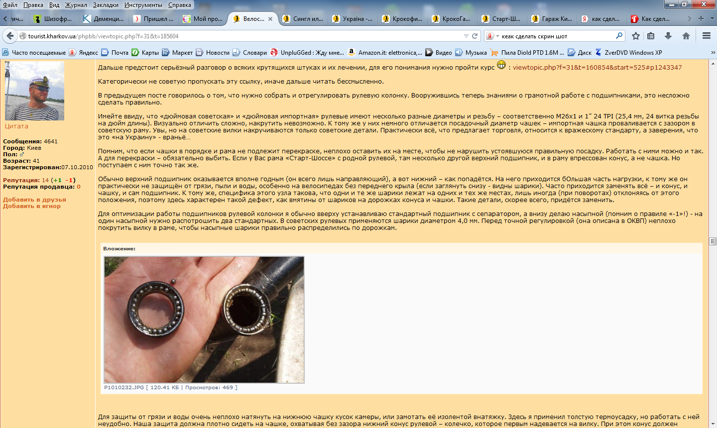 всякое говно вода и грязь (особенно при отсутствии переднего крыла). Поэтому поработавшие без внимания подшипники выглядят плачевно - смазка вымыта, они ржавые, сераратор рассыпан, всё подолбано и изношено... При этом верхний может оказаться исправным и красивым. Если ему уделяется внимание (что довольно хлопотно), владелец плачет после каждого дождя или поездки по грязи, слыша хруст и стенания того подшипника.