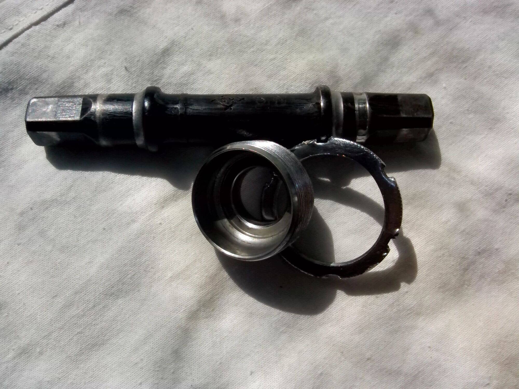 Справа на валу кольцевая потертость от езды без подшипника, но она никак не мешает.