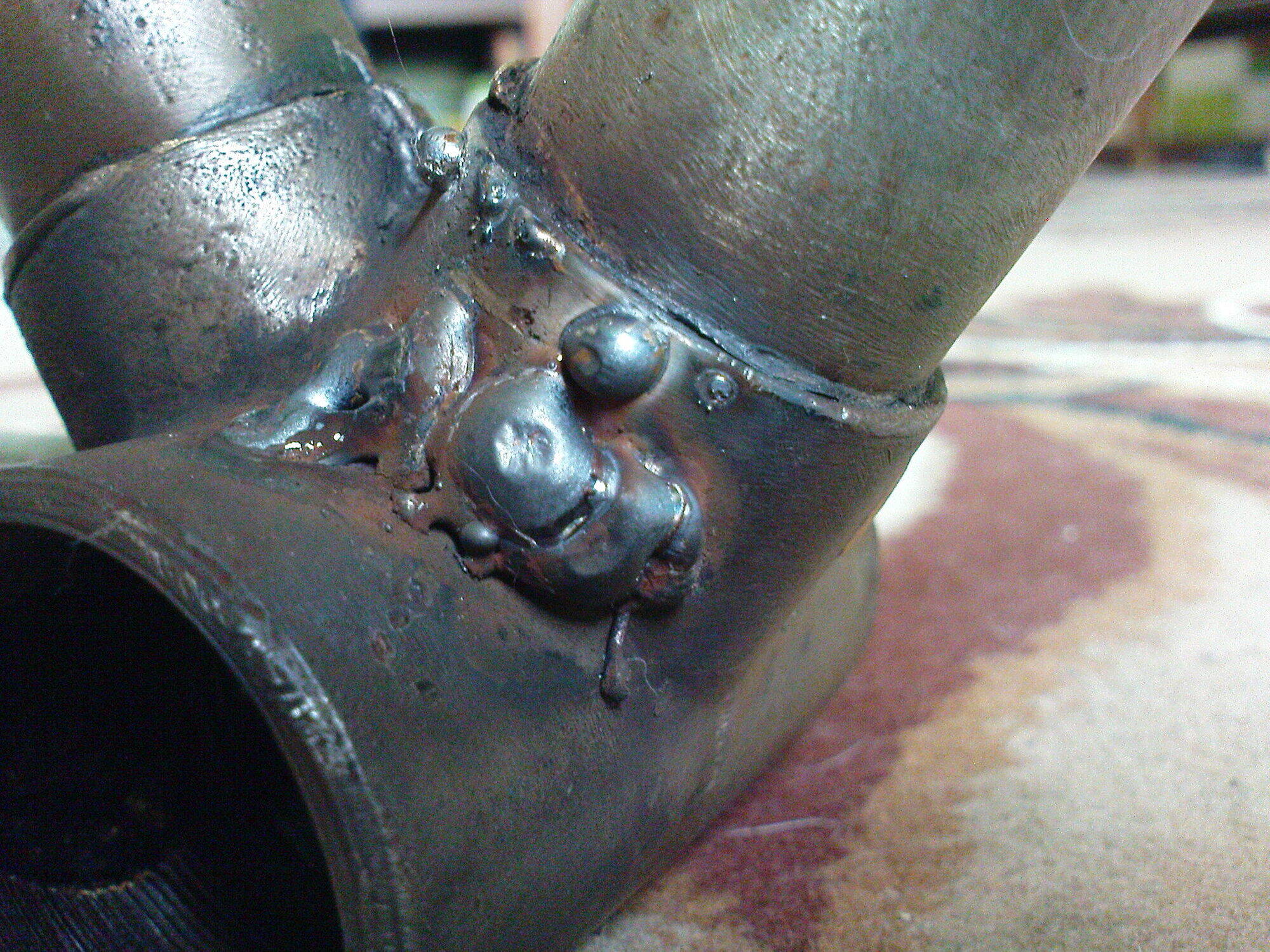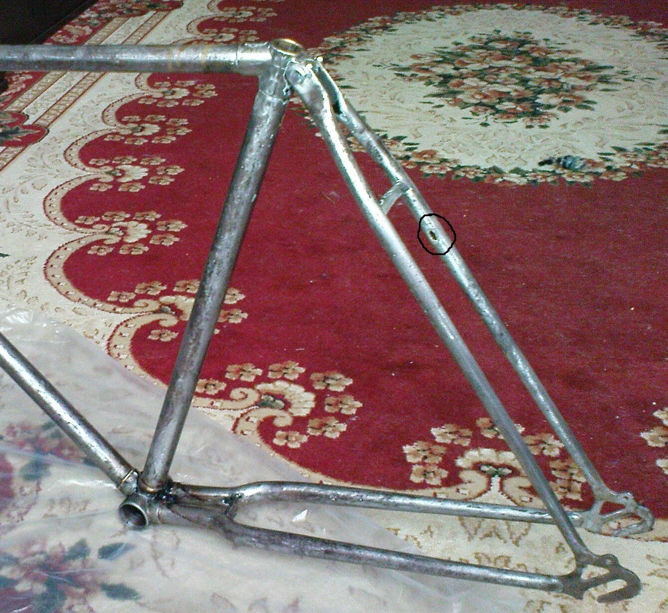 Но зато дошёл наконец-то до сварщика, заварил раму ПВЗ. Но при шлифовке шва на пере получилось так, что открылась дырка :facepalm: Хотя, швом там усилено место, я его сильнее обдирать не стану, а дырочка эта под краской закроется, так что фиг с ней. Мне этот велосипед ездить, а не в музей :) Чуть подравнял шов на стакане кареточном, но тоже без фанатизма, его за звездой не видно будет.