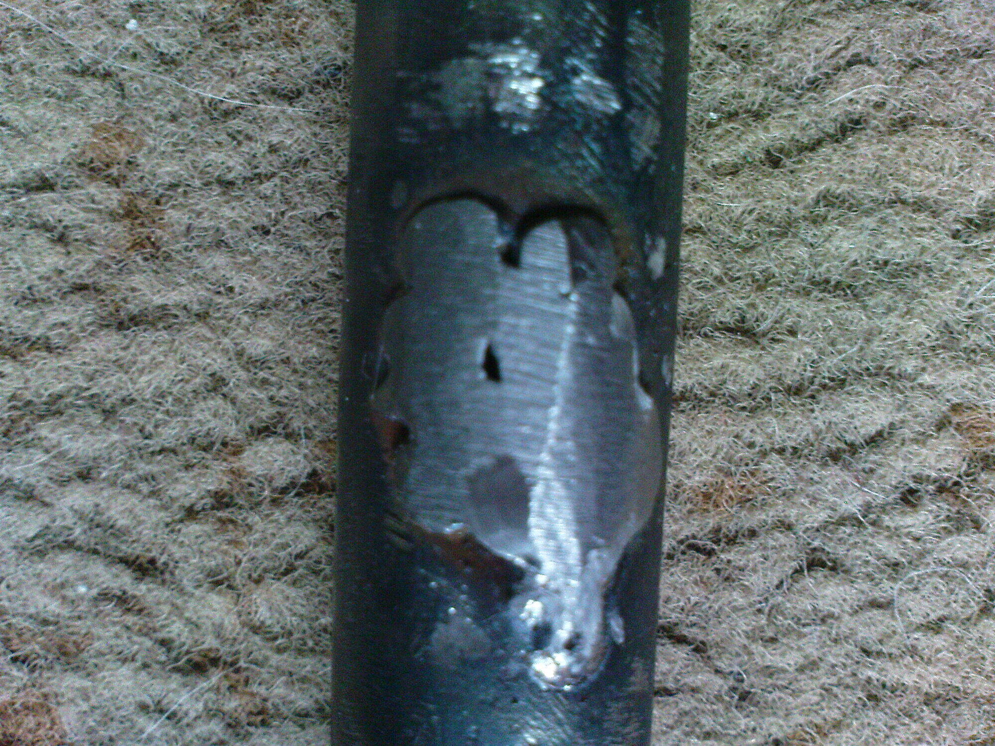 Вернёмся пока к ПВЗ... Нашёл я где заварить стакан, сказали через 3 дня подойти, посмотрим что из этого выйдет. Но тут есть ещё 1 нюанс с рамой этой - вот такая дырень протёртая. Мне рекомендовали её просто холодной сваркой замазать и не париться, насколько вообще такое решение кошерно? Сильно ли это отверстие влияет на прочность?