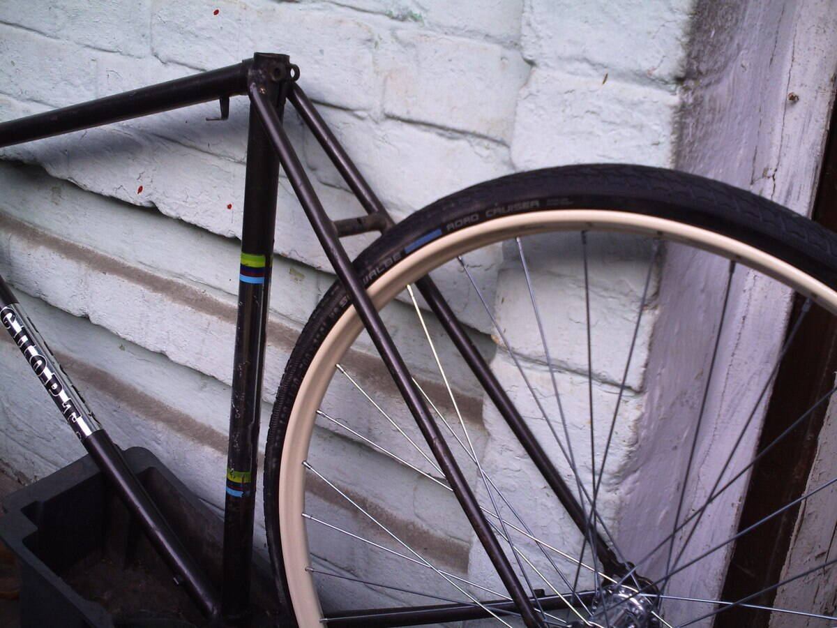 Далее перешли в Орлёнку. Задача - воткнуть заднее колесо 507-2,4 на триаловском ободе.
