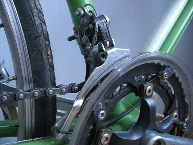Передний суппер - Shimano, наверняка китайская подделка, модель не определена. Работает хуже чем задний, видно, что конструктивно он расчитан на более "горные системы". Но, несмотря ни на что, со своей задачей справляется. Чем дальше, тем чаще стал им пользоваться, может скоро заменю его на комплектный к своей системе FD-A050.