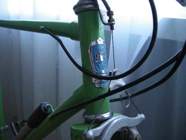 К вопросу модернизации подошел радикально. Разобрал полностью и перекрасил раму. Зачем? Да просто хотелось чего-то свеженького, уж очень он выглядел по советски, с дурацкими наклейками на перьях передней вилки, и кривой надписью "Турист". Далось мне это не легко, старая краска никак не хотела слазить, хорошая была... Но раз уж начал пришлось доводить до конца. Красил знакомый в гараже акриловой двухкомпонентной автомобильной краской, я даже по каталогу цвет выбирал, получилось хорошо, но простенико, сейчас жалею что не хватило терпения нанести надписи или узоры какие.