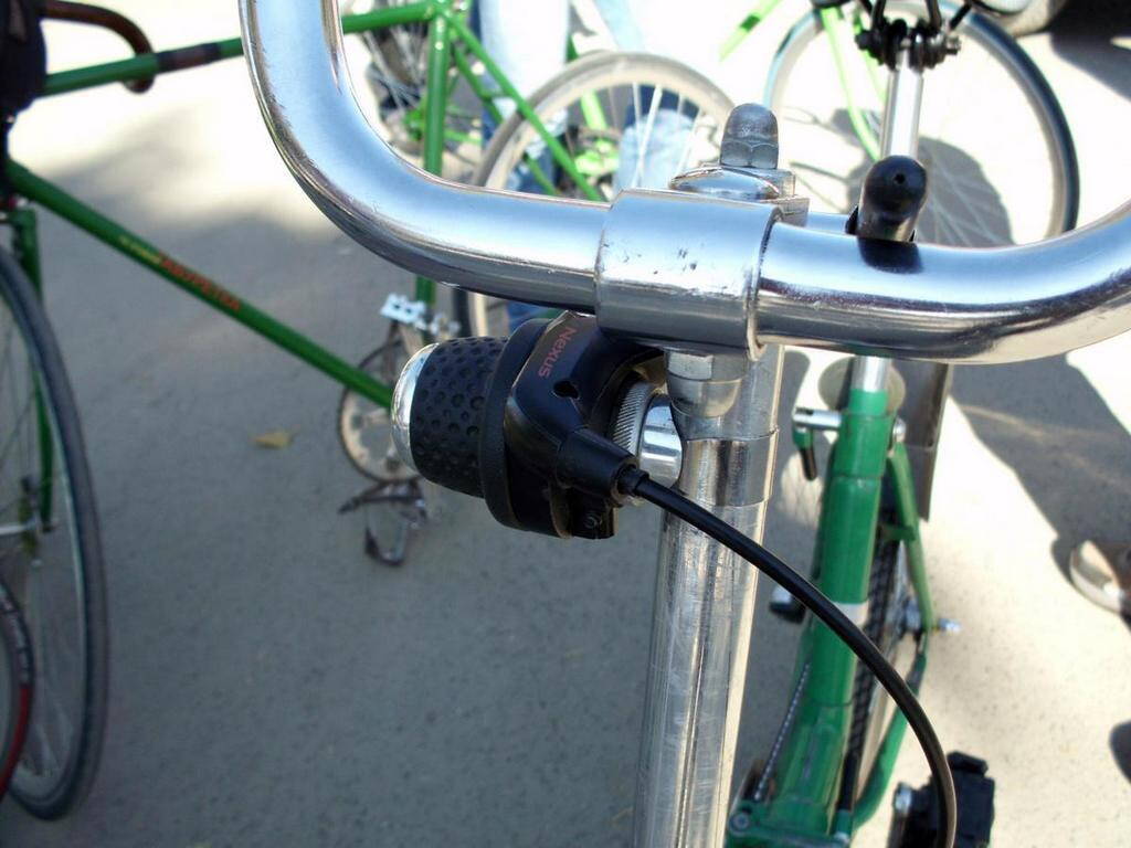 Шлялись как-то братья по разуму kisa, ant1k и podonok232 и сестра их по разуму kvitka.margaritka :lol: по барахолке, и встретили двоюродного брата по разуму на окрокодиленом складном Аисте :ROFL: . Вел сделан грамотно-минималистично, реально складывается и перевозится в транспорте, когда нужно - там и педали складные и руль суженый. Нас привлекла схема установки ревошифта для планетарки, а хозяин разрешил сфоткать исполнение своей идеи и опубликовать - может кому пригодится:
