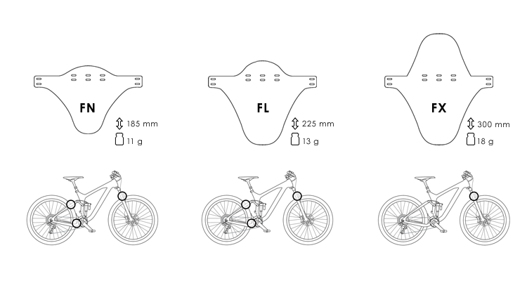 Теперь расскажу о том, что уже мной сделано, а также о планах на будущее. Уже есть одна модель в одном цвете (чёрный) с двумя вариантами крепления (стяжка и двусторонняя лента-липучка) для наиболее распространённых вилок (RockShox, Fox, Magura, Suntour). Сейчас крылья производятся по технологии, которая недорога, но только в случае больших тиражей.
