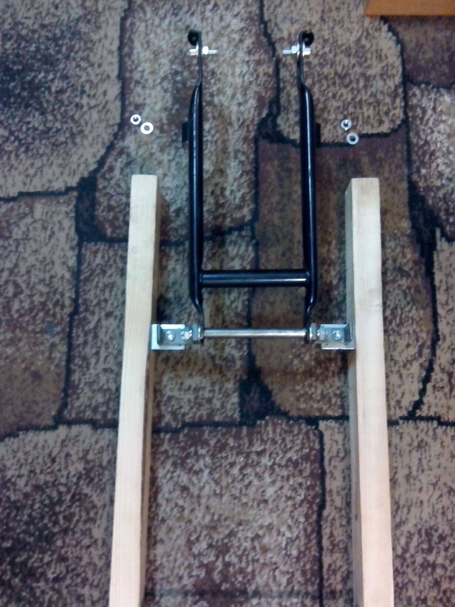 Закрепил мопедовские вилки на брусьях и разметил места отверстий под подшипники.