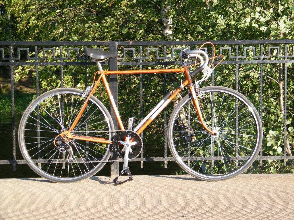 Времени летом было в обрез, 5 недель военных сборов, 6 недель практики. Но 300 км как никак накатать удалось. Передний переключатель, к сожалению, так и не установил, но в планах его установка имеется. 7 звёзд оказалось многовато как минимум потому, что на последней звезде цепь не могла проворачиваться, тёрлась об раму. Сгоняв на каникулы домой (а это где-то в районе Урала) увидел дешевенькую китайскую пятизвёздную трещетку, на которых гонял все свои школьные годы на туристе. Стоимость всего 170 руб. Взял не задумываясь. Встала отлично. Кстати, всё там же дома передние спортивные звезды шимано стоят в районе 800 руб. Да и в Питере ближе к осени продавец, у которого я брал свои звёзды, скинул цену примерно до такого же уровня. Тормоза подобные моим (правда надписи затёртые, качество с первого взгляда не очень) раза в 2 дешевле, чем взял на ибэе. И вот ещё, небольшое ЧП произошло на первой сотне километров. Едва отъехал от общаги, заезжая на небольшой бордюр меня чего-то повело на бок, не успел вытащить ногу из туклипсы и хорошенько шмякнулся об асфальт на левое колено+передними звёздами ободрал правую ногу. Но, слава Богу обошлось ссадинами и хрустом левой педали. Педаль перебрал, не досчитал одного шарика. Собрал без него, хруст ушёл.
