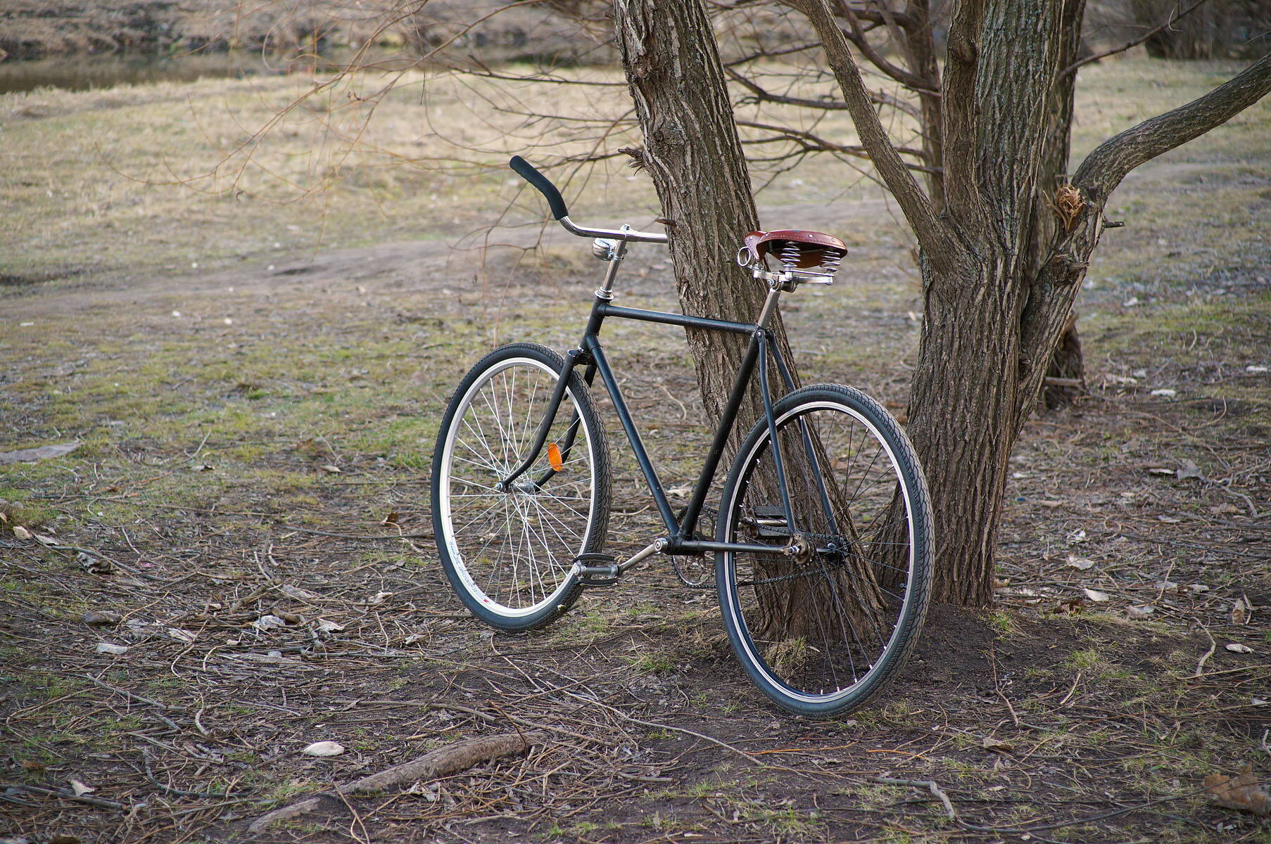 По дороге назад попытался прикинуть, что не так с рулём и не попробовать ли приблудный баран со спецзаказа 1992? У него маленький вынос, но он и вперёд выступает и по высоте уникально велик. С низким бараном, напомню, у меня не срослось кататься.