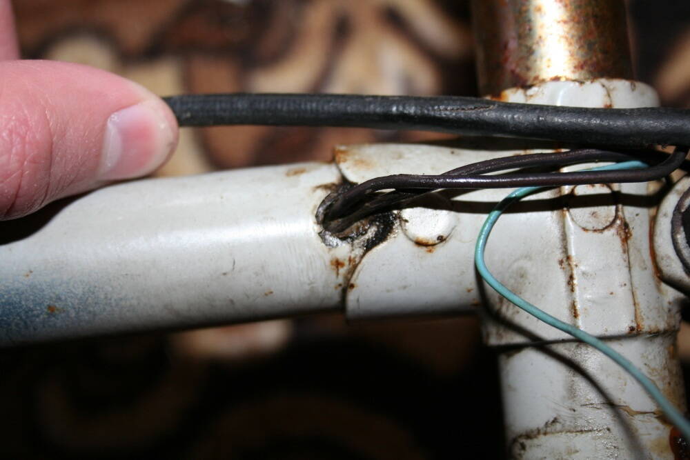 В верхней трубе просверлены дырки для проводов, трещин я вокруг не обнаружил. Как их лучше заделать? Просто сваркой будет достаточно или лучше всё-же паять? И тогда насколько большие заглушки лепить?