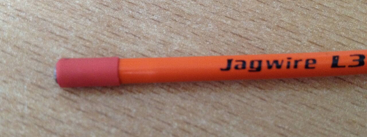 Рубашки Jagwire куплены на тут, тормозные со светоотражающей полоской и скоростные л3. Тормозные я перекусил электрическими кусачками и обработал края надфилем, а вот со скоростными пришлось повозится :jedays: . Кусачки их не берут, усилены десятком продольных жилок из стальной проволоки около 1 мм. Хотел отрезать болгаркой, но на часах было глубоко за 23, покапавшись нашел ножницы по металлу. Чтобы не трескалась оплетка обмотал концы изолентой и вставил зубочистки, очень большим усилием и перекурами нарезал их. Потом все настроил и покатался по коридору :roadrace: