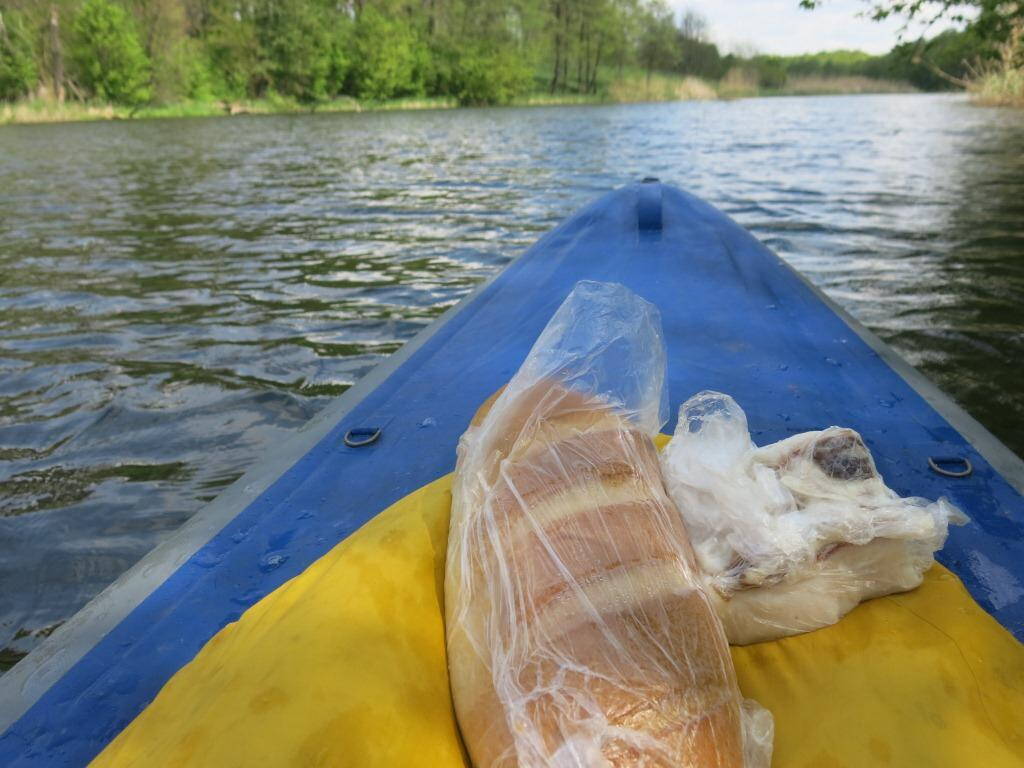 По маршруту р Рось. Первый день вышли на воду в 14:30, последний пятый день пристали чуть раньше 12:00. Туда и обратно добирались частными мелкими маршрутками. Все таки два рюкзака на двоих + упаковка с веслами, сильно упрощает доезды.