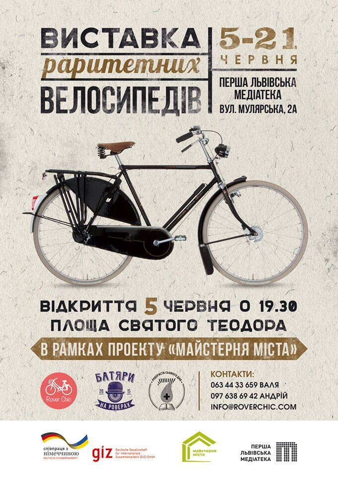 З дозволу ТС (HENK`a) зроблю легкий фотозвіт з виставки "Раритетних Велосипедів" у Львові (5-21 червня 2015року). Хоча представниця нашого форуму, більш відома тут як БірБікса, на мою думку, не має жодного відношення до реставрації, але все ж таки була запрошена і тому має повне право бути тут за документована :D ... не так як екземпляр, ну але як відвідувач події точно :wink: