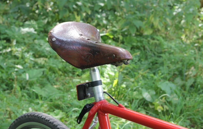 И тут моя посадка сильно изменилась. Я снова увидел переднюю втулку :). Седло сдвинуто максимально назад, но его хочется сдвинуть еще, я как-то сильно приблизился к рулю, кисти рук стало ломить из-за непривычного хвата и/или распределения веса. Если оставлять это седло, возможно придется вынос менять на более длинный или искать подсидел со смещением назад. Покатушка была недолгой, поэтому моя ...опа еще не решила нравится ей это седло или нет. Первые ощущения неплохие. Не смотря на то что седло разношено чей-то чужой ...опой. Реставрация и восстановление формы может быть будет в межсезонье.