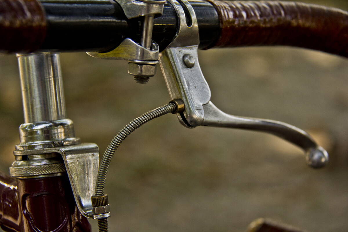 Посмотрим фотки велосипеда выше. С левой стороны в рычаге фигурный пропил, туда заводится красивая фасонная бонка с дыркой, в дырке трос, упирающийся в бонку напайкой. Это стильно выглядит и украсило велосипед, но по большому счёту, лишнее. Привычная конфигурация этого места, где тросик напайкой заведен в фигурную щель на рычаге, рулит.