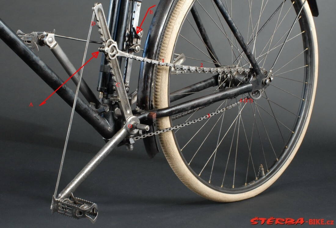 Схоже на хитру систему переключення передач. Там знизу тросик підводить і схоже перекідує точку кріплення цепка. Якщо то так то розбіг передаточного числа зашкалює. При всій незвичності жодної лишньої, нефункціональної деталі я не бачу. І цепок спеціальний, а не з бензопили :wink: