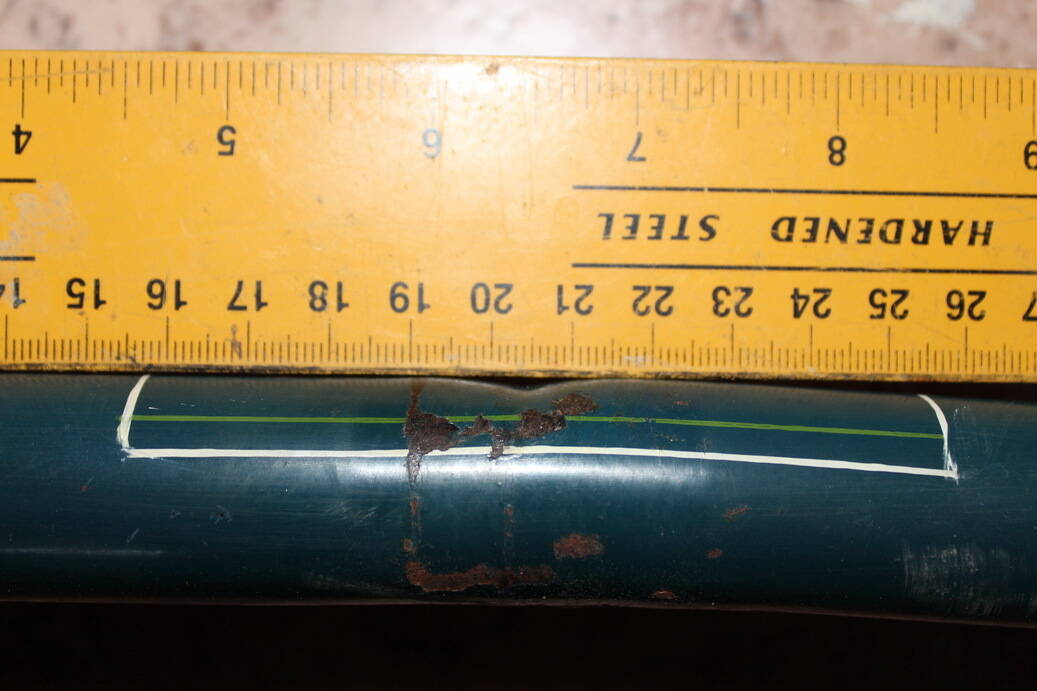 Найдите толстую круглую верёвку - только не канат, а эту, в оплётке такую. Сделайте трубу прямой и дайте несколько фоток этого места. Сами внимательно осмотрите заломы металла - не появились ди там микротрещины (можно досдирать краску для этого). От этого зависит дальнейший ремонт.