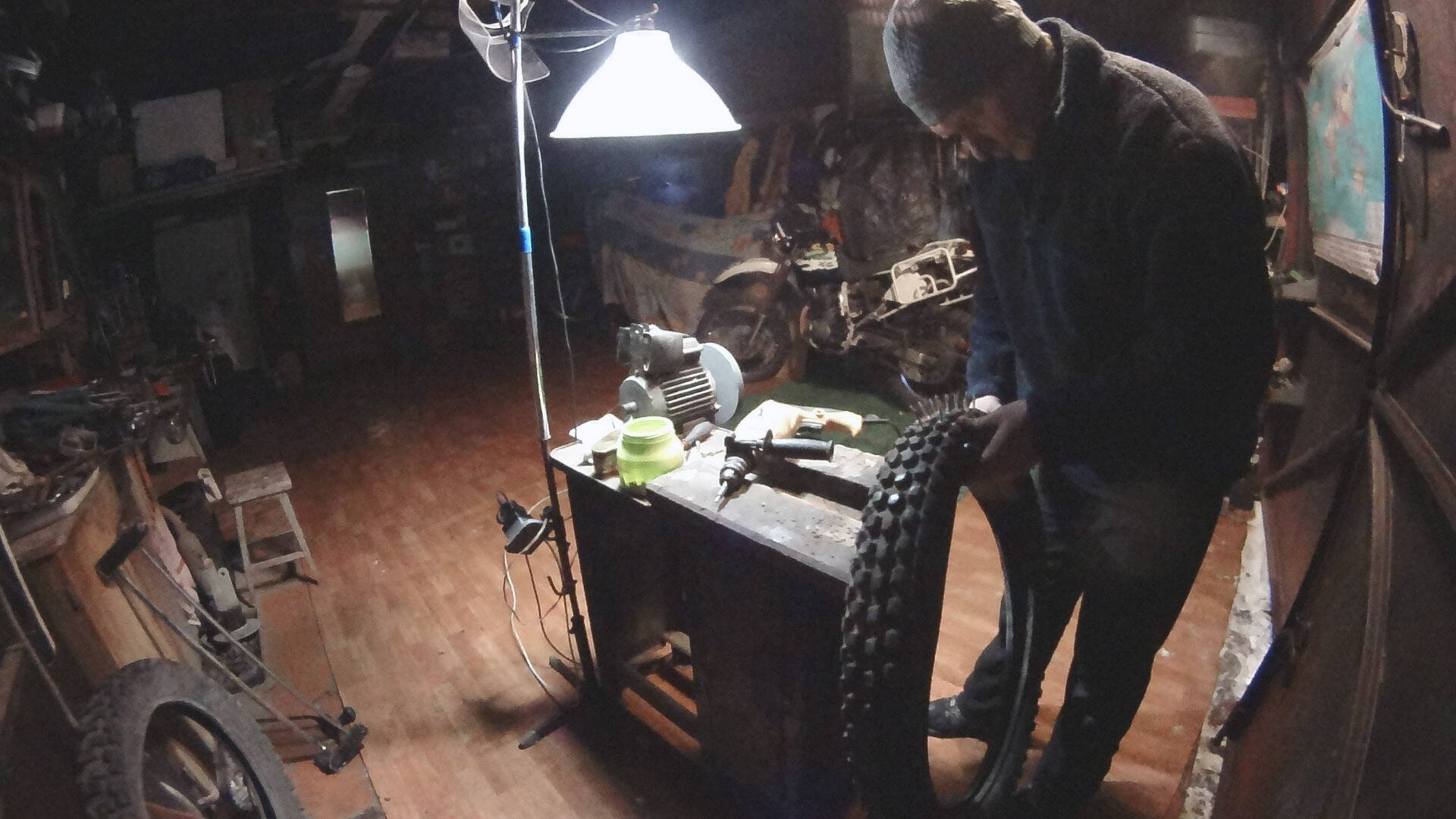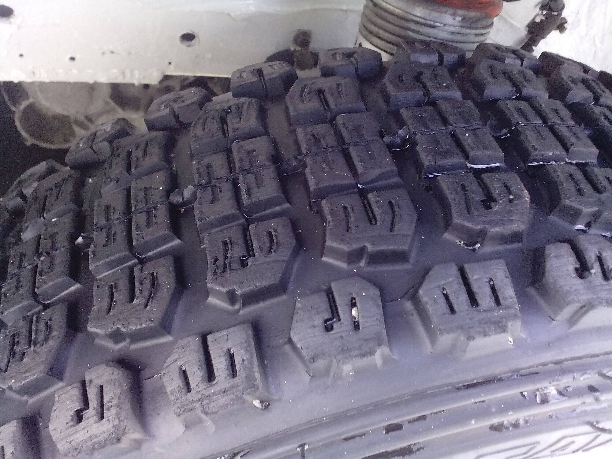 В свете последних сракопадов изменений погодных условий в сторону увеличения гололёда моя таки не выдержал и процесс ошиповки саморезами какой-то старой покрышки стартовал сегодня под вечер :D