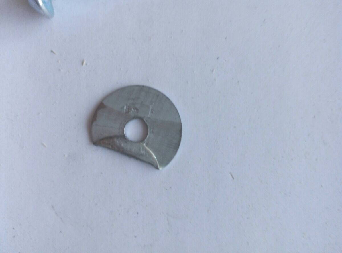 Верхняя перемычка припаяна криво по двум осям. Следственно и просверлена она тоже криво. Для решения этой проблемы взял тонкую шайбу и согнул один край в два раза, таким образом получив утолщение. Затем обточил так, чтоб не выпирала за крепеж тормоза. Ось выравнялась, но ставить буду когда найду проставки с овальным вырезом под перемычку ибо не хочу сплюснуть трубу.