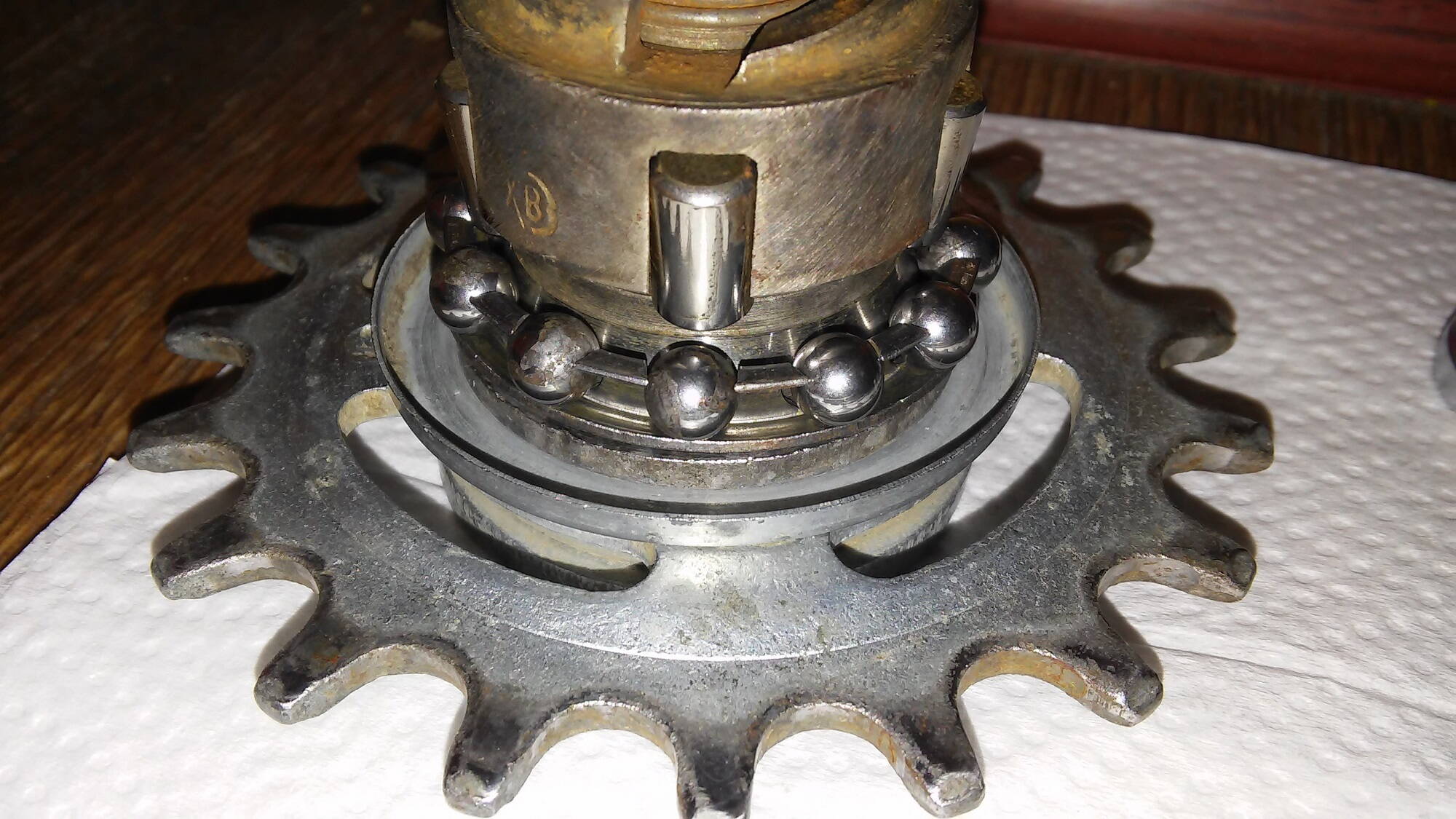 За выходные удалось немного - очистить детали задней втулки. Радость - подшипники живы, все с минимальным износом. На днях соберу втулку. Все детали (кроме подшипников) - все с клеймами ХВЗ