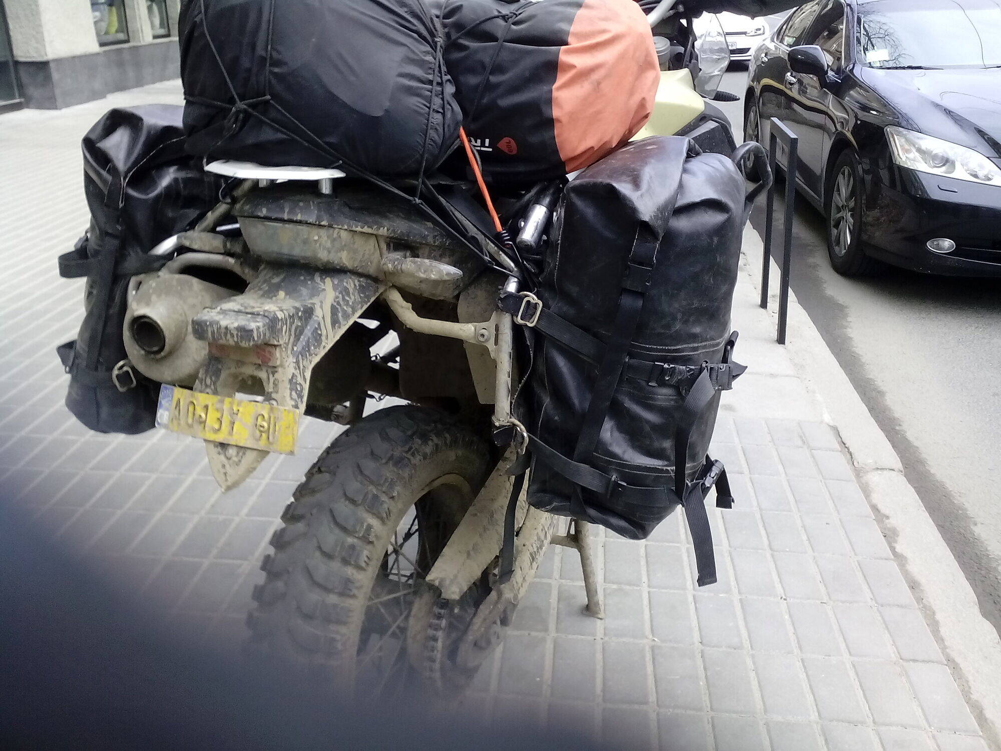 Только что возле кофейни на Сумской познакомился с Райном. Это его байк: