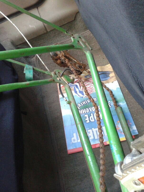 Четвертый (если судить по номеру рамы) из всех ранних, что мне известны В-134. Счастливый обладатель этой кучи металлолома, опять же, я. Что делать с ним, пока не решил... Кстати, декали на верхней трубе уже нету, а надписи "Сделано в СССР" под седлом на подсидельной трубе - еще нету.
