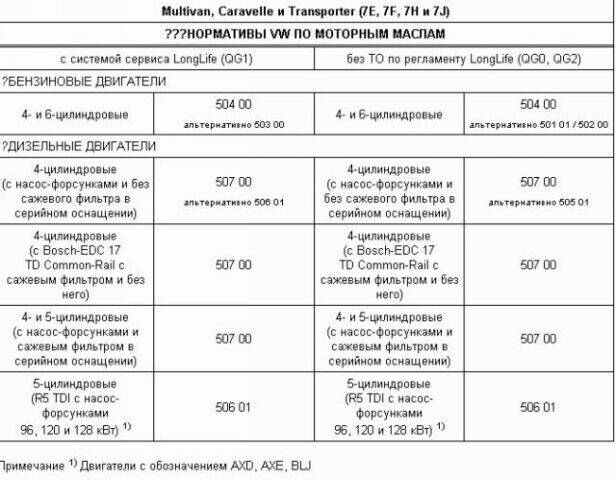 tatamodka, если сомневаетесь, то обратитесь на фирменный сервис VW. Там вы получите оригинальное масло, рекомендованное заводом изготовителем. У моторов Фольксваген Т5 допуски по маслам имеют отличия даже по году выпуска.