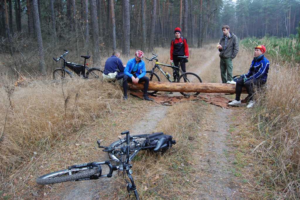 Выезжаю утром из Чугуева, а ростовская трасса мокрая и на полях растелается туман. Приходиться ехать быстро, чтобы не опоздать на старт. В результате грязь с трассы летит на меня, люди на остановке удивленно смотрят на меня. Подъезжаю к Экватору, вижу что все чистые. Только я один такой грязный, особенно лицо в каплях грязи. Наконец все 8 человек в сборе. Паша помогает мне провести группу по грунтовым дорогам через кладбище, дендропарк с выездом на трассу, по которой мы поехали через рассвет. Грязи было мало на полевых дорогах! По трассе миновали З. Колодець и Терновую. Доезжаем до Введенского леса, Паша незаметно скрывается с виду. Далее мы доезжаем до моста через Уды. Из кустов высовывается Пашин фотоаппарат. За мостом сворачиваем на лево по дорожке, ведущая до самих Введенских гор. Ну как всегда построение участников на пиках гор. Введенские горы уникальный рельеф для Харьковской области - там стоит побывать каждому. После вдохновений от горной высоты мы направляемся в сторону Старой Покровки. Оттуда вверх в сторону базы С200. Но по плитам не стали ехать, а нашли лесную дорожку которая параллельна той основной дороги. Несколько подъемов и спусков, как мы на берегу Сев. Донца. Затем следуем к Эсхаровской плотине тропинкой через домики отдыха. Экстремал - наш участник рассказывает как опасно на байдарке сходить в воду - там немало людей потопилось! двое участников отправляются домой короткой дорогой через Эсхар. А нам предстоит побывать в лесном лабиринте. дело в том что, я от плотины начал строить маршрут по интуиции. Итак подъезжаем к перекрестку 6 дорог. Прямо ехать для меня лучше всего, но поехали дорогой которая чуть - чуть по диаганали. Места здесь классные, озера, болота, красивый лиственный лес. Доезжаем до деревянного моста, который я впервые увидел, потом начинается некоторые развилки. После всего этого через 5 минут оказываемся снова возле этого моста. Сделали круг! Далее едим уже как правильно, но Паша отстал. Нчинает он звонить, я ему обьясняю направление нашего передвижение. Судя по его рассказам я понял, что он снова попал к мосту в третий раз, но только без нас. В итоге он блукал некоторое время, что хотел уже отколоться от нас, но я его все-таки встретил - своих небрасаем в лесном лабиринте :) Потом заезжаем в глубину хвойного леса, ориентироваться в нем несложно, короче доезжаем до Малиновки, где случайно натыкаемся на родник. Вскоре два человека едут в гости на фигуровку. В Чугуевских лесах катим по интересным тропинкам, а также пересекаем много мостов, рельс. В конечном счете, доезжая до Новопокровки, мы разделяемся. Двоих я провожаю на элку и остаюсь я сам - быстрым темпом по пескам возвращаюсь домой. И опять не доехали до Васильева Хутора и К. Яруги...