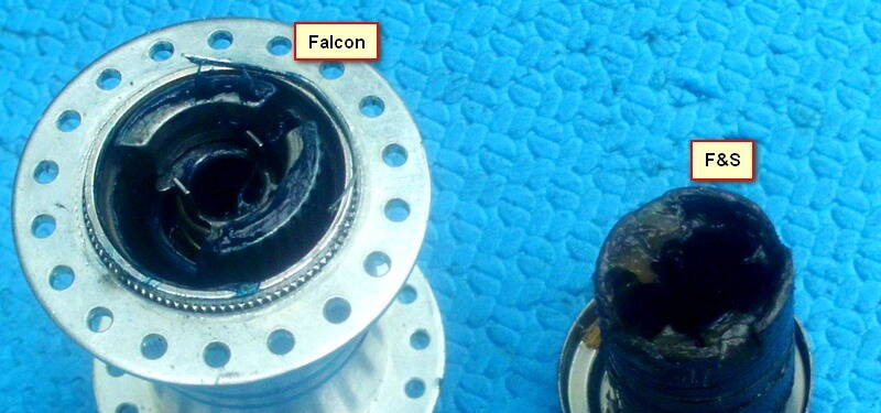 По конструкции этих втулок видно, что F&S тяготеет к старой немецкой школе, что неудивительно (см начало темы), а Falcon является клоном Шимано, которые по-своему доработали немецкую конструкцию. И которые поставили эту странную фигню с пружиной и зачем-то уменьшили колодки.