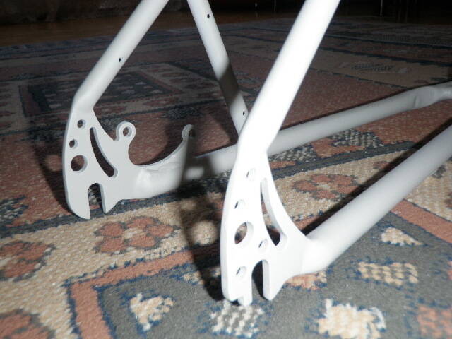 Трубки сплюснуты с обеих концов, просверлены отверстия под крепёж. Верхние края трубок крепятся болтом к зажиму подседела, нижние края крепятся больтами через отверстия к дропам заднего колеса, вся конструкция держится за счёт мостика.