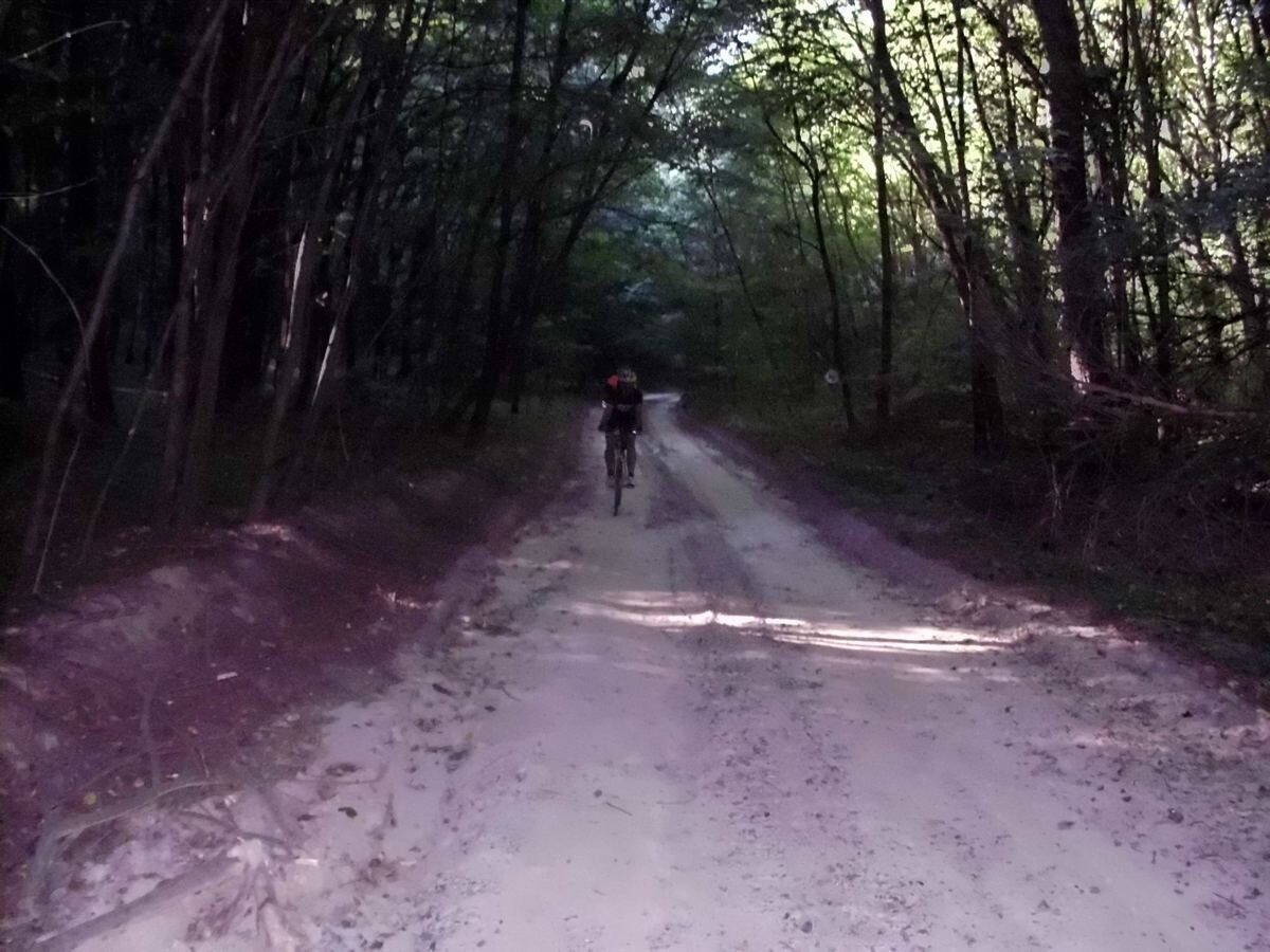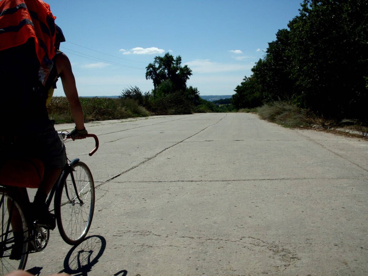 Тем не менее, на спусках мы летели довольно быстро, хоть они и изобиловали жёсткими грунтовыми колдобинами. Особенно летел Степан, на жалея «Страшка». После того он обозвал велосипед Безстрашком :D