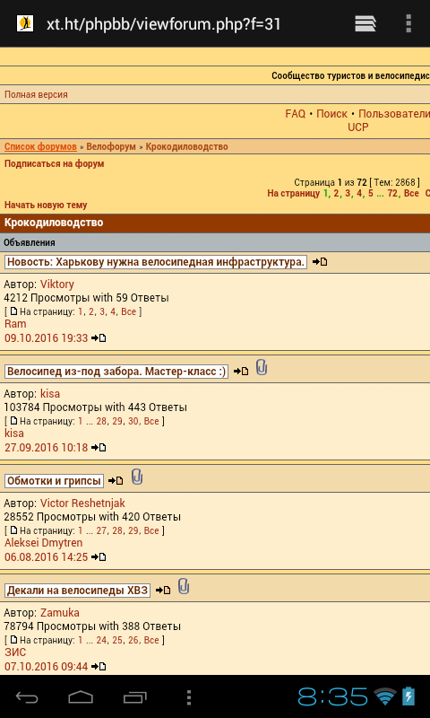 Олексій, це є тільки на головній "Список форумов". Коли серфиш по нашій гілці на жодній сторінці я не бачу цього. Мені доводиться тицькати "Список форумов" щоб добратись куди хочу. Або перемикатись на повну версію, але це теж стає незручно через малий розмір екрану. :unknown:
