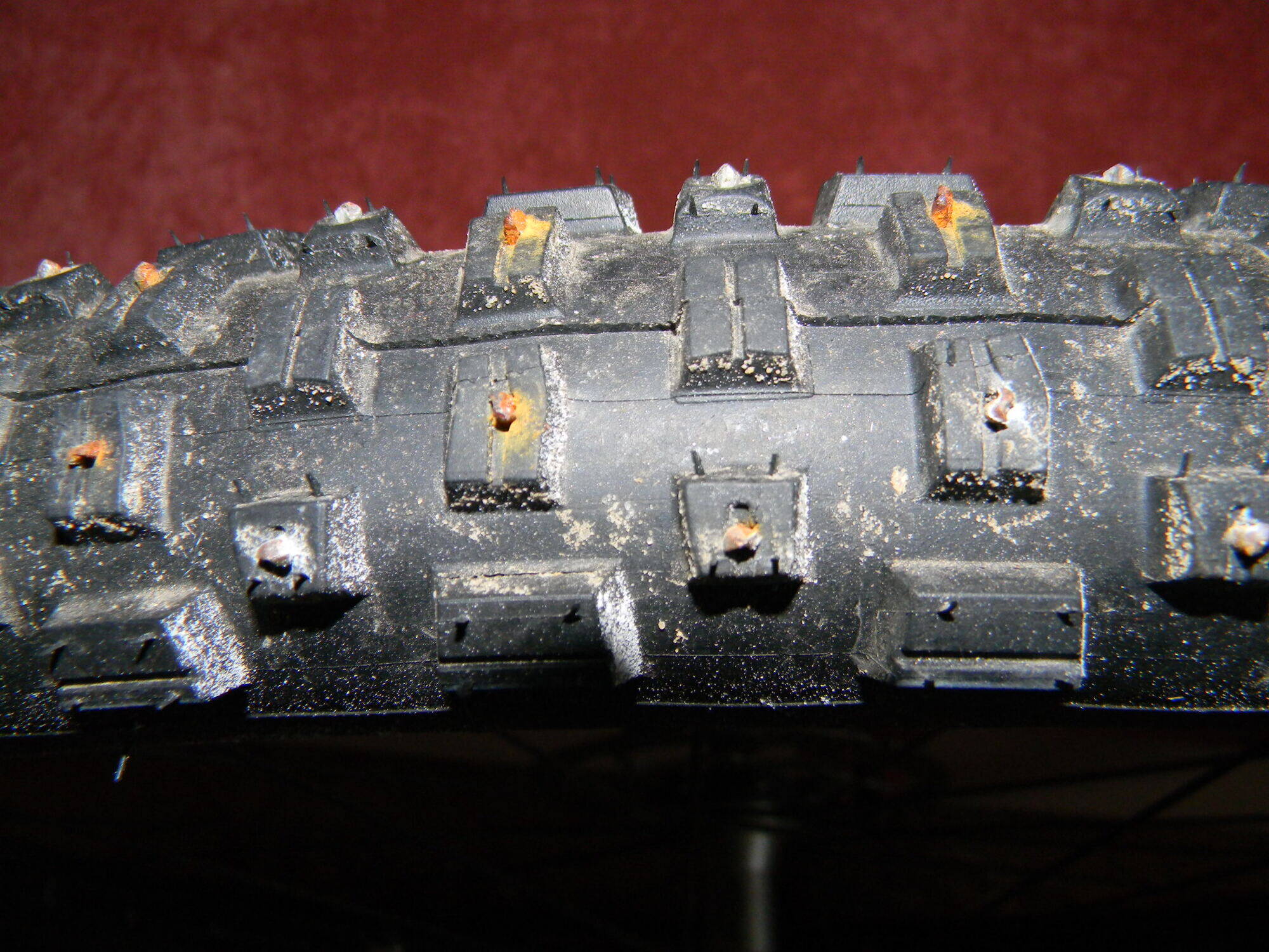 Высота шипов на самопальной "зимней" покрышке получилась 2 мм