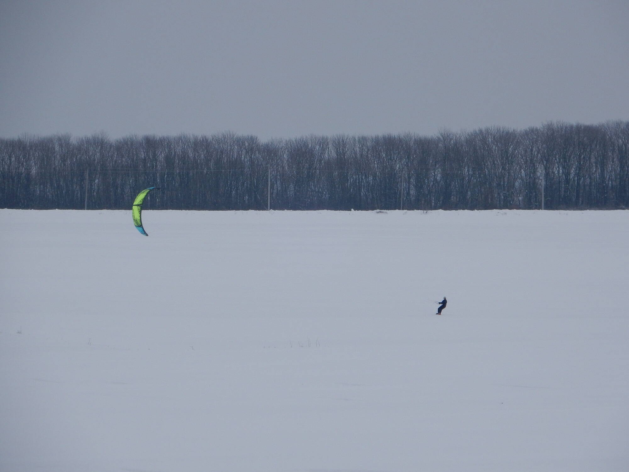 Из минусов - шел мелкий мокрый снег и передний балон кайта получал обледенение,