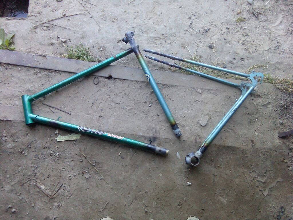 Как я понимаю, они слабые на лобовой удар. В моем случае это результат заезда друга, он долго искал тормоза ногами, а когда вспомнил про ручные встреча с забором была уже неизбежна :D . Сломалась рама когда вел был у младшего брата, ее заварили. Со временем все около сварки сгнило. Да и без сварки результат был бы тем же, время может понадобилось бы больше. Труба деформирована в самом нагруженном месте. Нагрузка знакопеременная причем практически во всех плоскостях, работает и на сжатие - растяжение, и на кручение, и на излом.