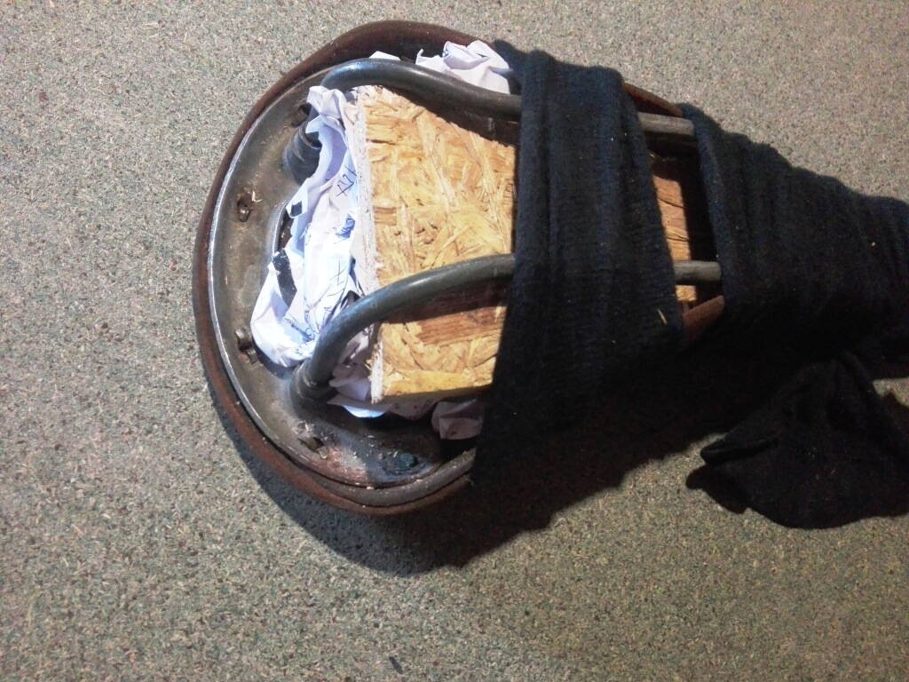 ....намял бумаги которую держу для буржуйки и плотно затолкал между осби и черпаком.