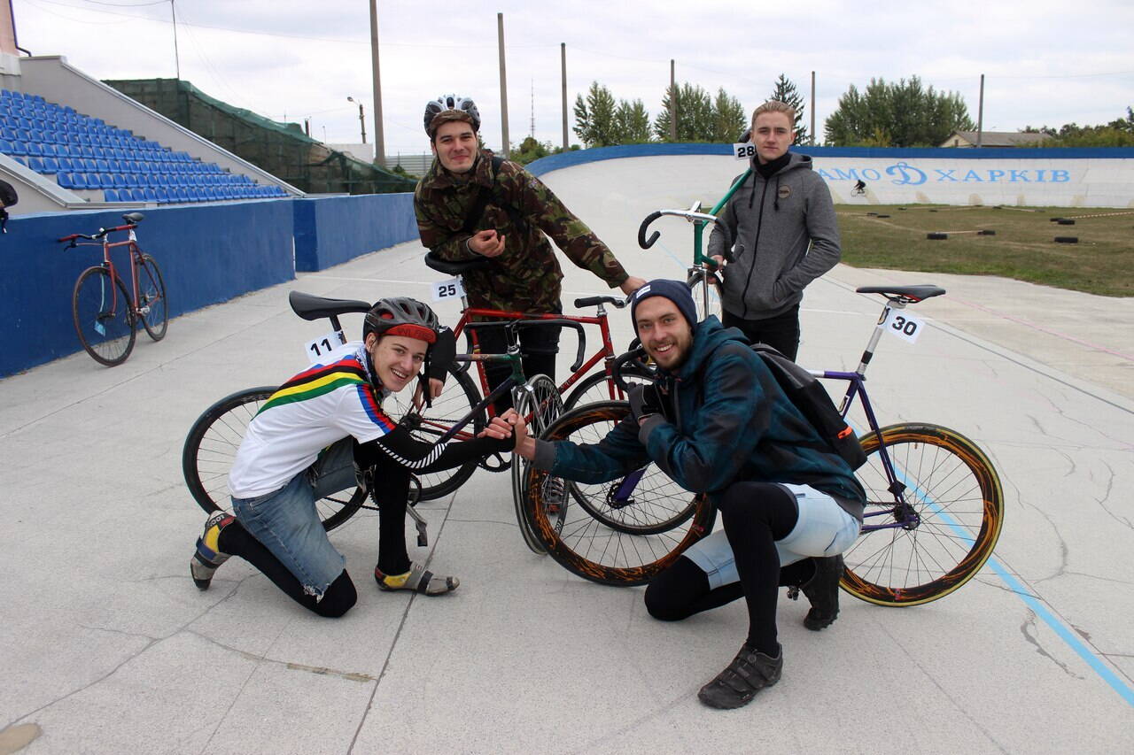 Выкладываю фотографии прошедшей в Харькове на велотреке ДИНАМО любительской гонки среди фиксиров ЖАРА 2017 прошедшей в конце сентября . Ребята ехали следующие дисциплины ... гит 200 метров сходу , гит 500 метров с места , кейрин , спринт , и групповая гонка с выбыванием . Ваш покорный слуга на этих соревнованиях выступал ... в качестве тренера / когда ребята ехали гит двухсотку , многие из них выехали на трек впервые , и нам с Сергеем Алексеевичем Тараскиным / воспитавшем немало трековиков / пришлось детально объяснять им где и как нужно разгоняться , держать правильную траекторию , коридор и тд. /... в качестве маршала гонки / на фото /.... в качестве разгоняющего в кейрине ... и участника в гонке на выбывание . Короче БЫЛО ВЕСЕЛО !!! ОГРОМНОЕ СПАСИБО ДИМОНУ , организатору соревнований !