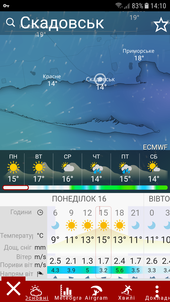 Попередні, котрі я був поставив, мені також не сподобались і я їх викинув.( вони всі називались windy). А на цьому хоч інтерфейс на українській (російській) і більш зрозуміло. Я кілька днів уже користуюсь, щоб звикнути і мені сподобалось. Провіряв, як прогноз ( в основному вітер, адже готуюсь до моря) то майже відповідає дійсності. На цьому сайті https://www.meteoblue.com/ru/%D0%BF%D0% ... 90_8096494 поверхово ознайомився що це за моделі погоди NEMS, ICON, GFS і прийшов до висновку, що потрібно вибрати ту модель, яка показує вірніше. А в цьому додатку є можливість дивитись порівняльну картинку усіх моделей разом. В приципі я пока задоволений. Перевірку показів здійснював протягом 2-х днів під час велопрогулянки на 50-60 км на різних ділянках траси. Відповідає!