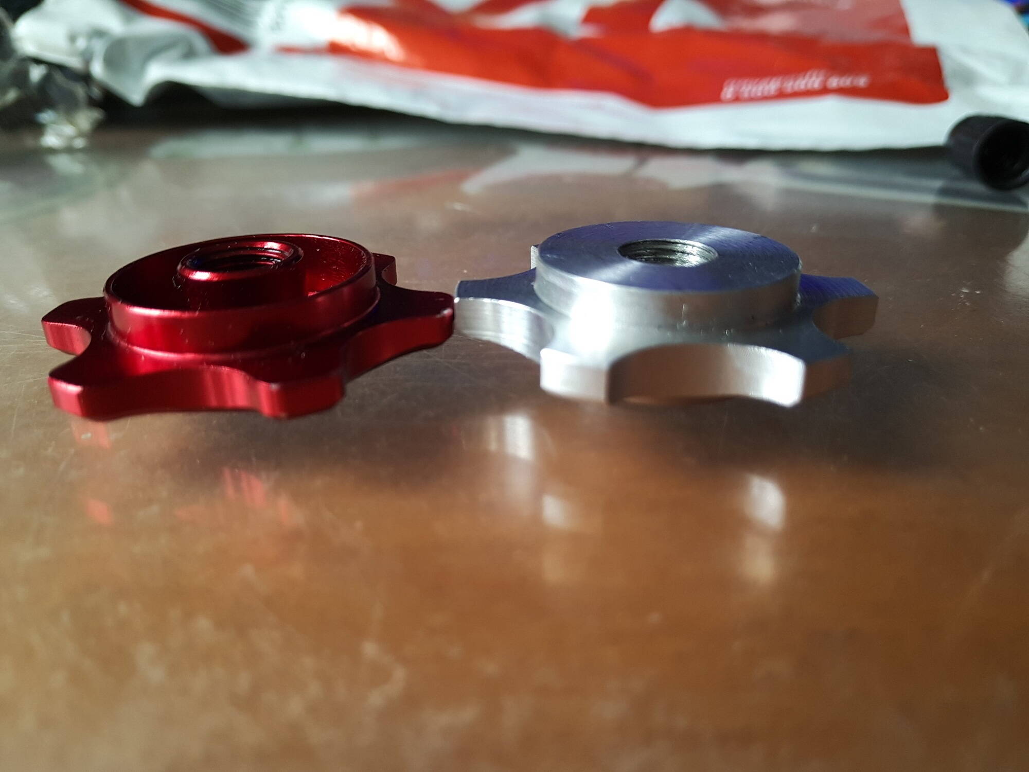 В очередной раз заказал у Автора топкепы, теперь для вилки RST capa,а также были изготовлены корпуса магнитов для велокомпьютеров. Корпуса магнитов получились легкие, легко переставляются, хотя закреплены на спице надежно, естественно крепче стоковых.