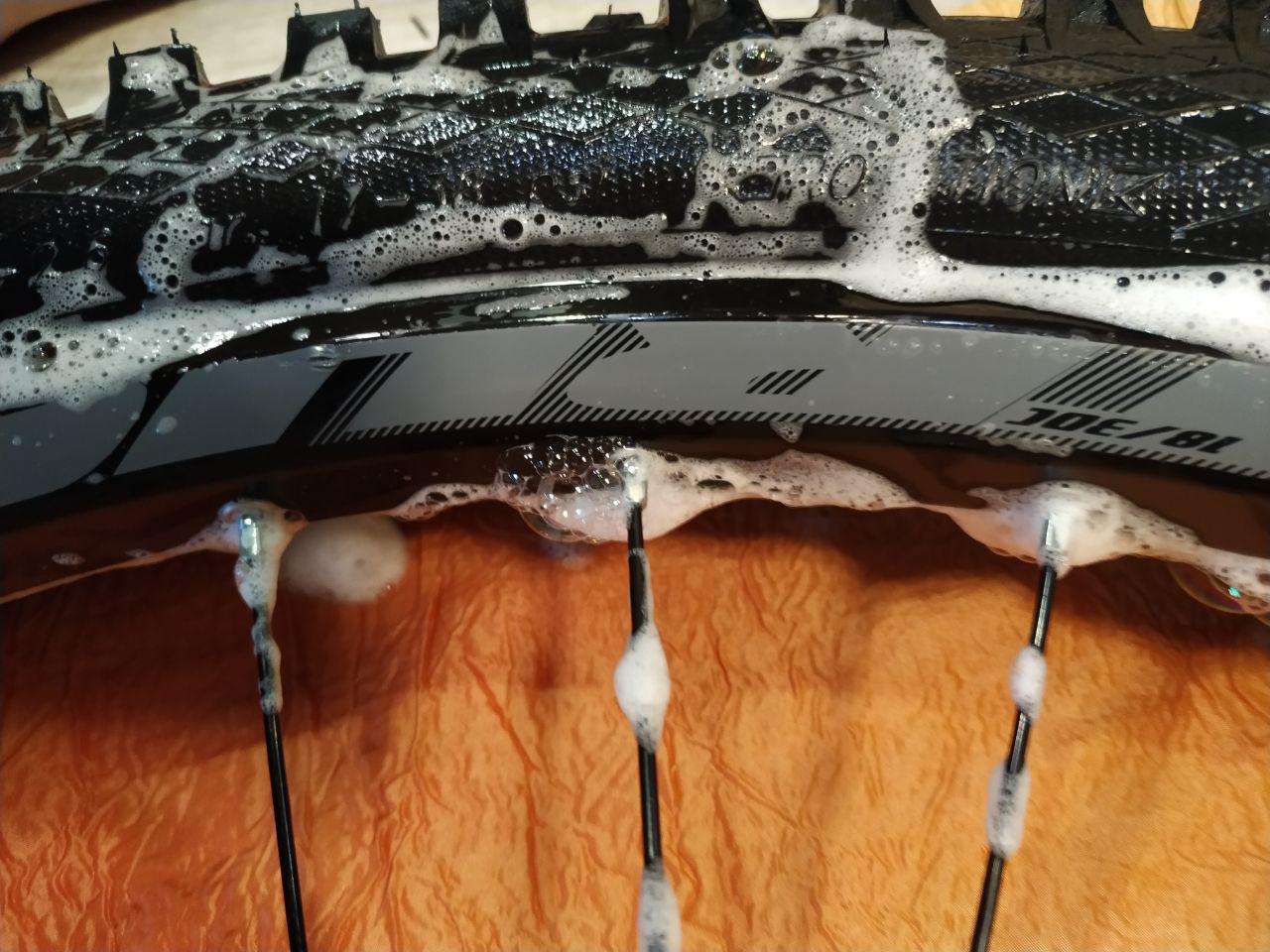 PS рано обрадовался, плохо облил мылом( таки травит из под одной спицы и из под нипеля для накачки(((, есть подозрений что травит из под нипеля подкачки. от туда попадает в внутреннюю честь обода. но страно что спица из под которой трави находится примерно в четверти колеса от нипеля.
