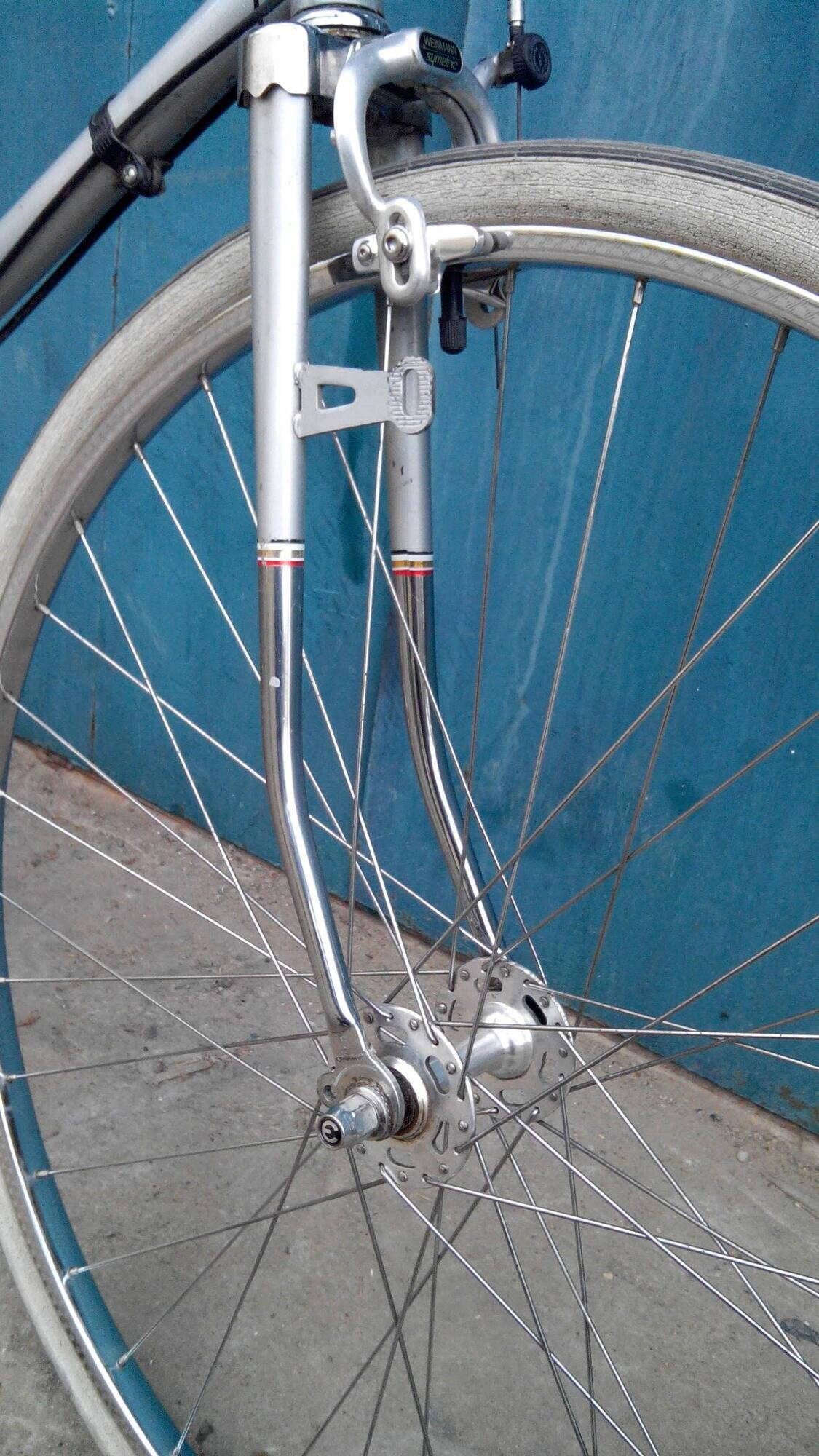 Пару лет назад на олх набрел на велик, понравился изгиб "гитары желтой", то бишь изгиб руля, вел находился кажется в Луцке, немножко поторговались.... И продавец отдал мне его за 2400, так как,по его мнению, на переднем колесе было "яйцо", но на самом деле там была небольшая восьмерка, короче , мне пришел вел немецкой фирмы "epple", с уродливым женским седлом "селле роял" с трещиной, которое до сих пор валяется где-то у меня в гараже. Вместо него я поставил кожаное седло хвз, В общем вел сейчас вглядит так: