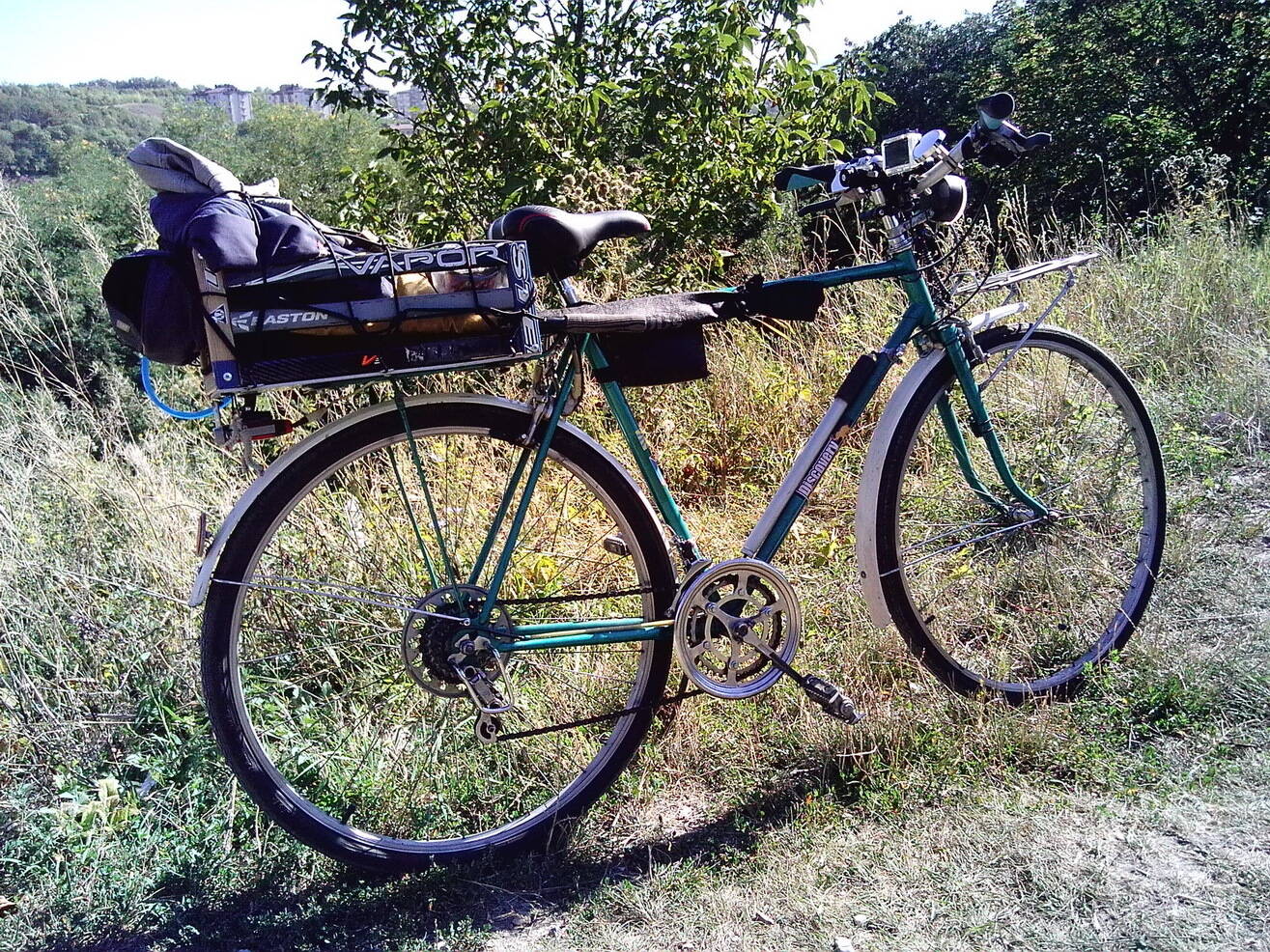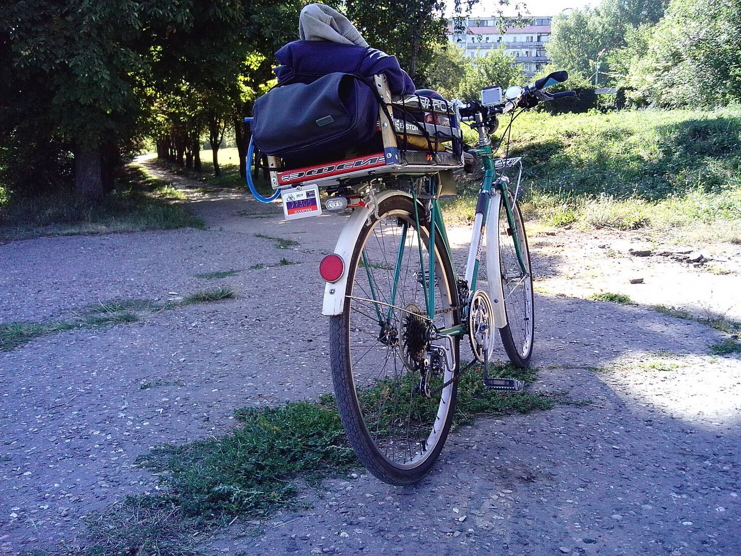 Комментарий к файлу: Пандемия замучила мой велос. Пришлось заменить задний багажник (ящик из под фруктов) на эксклюзивный из старых клюшек. Вроде нормально!