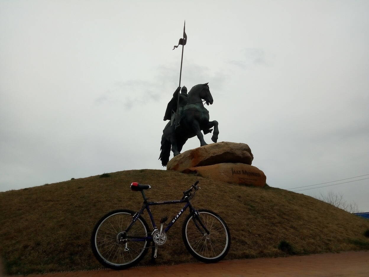 Ездил сегодня на Оболонь за глаголом. По дороге заехал в парк Муромец. Сфотал муромца. Правда какой-то велик в кадр попал.