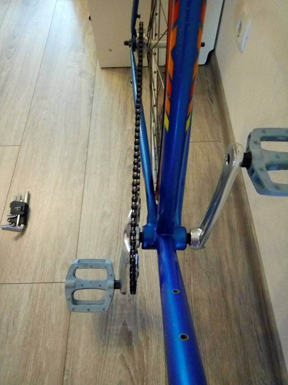 цепь длинновата имхо. с срулем беда. болт выкрутил , а руль не поддался . сидит намертво.