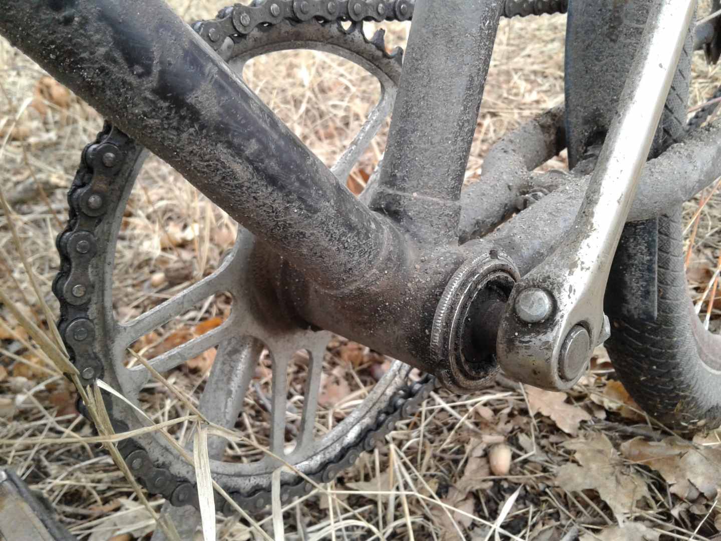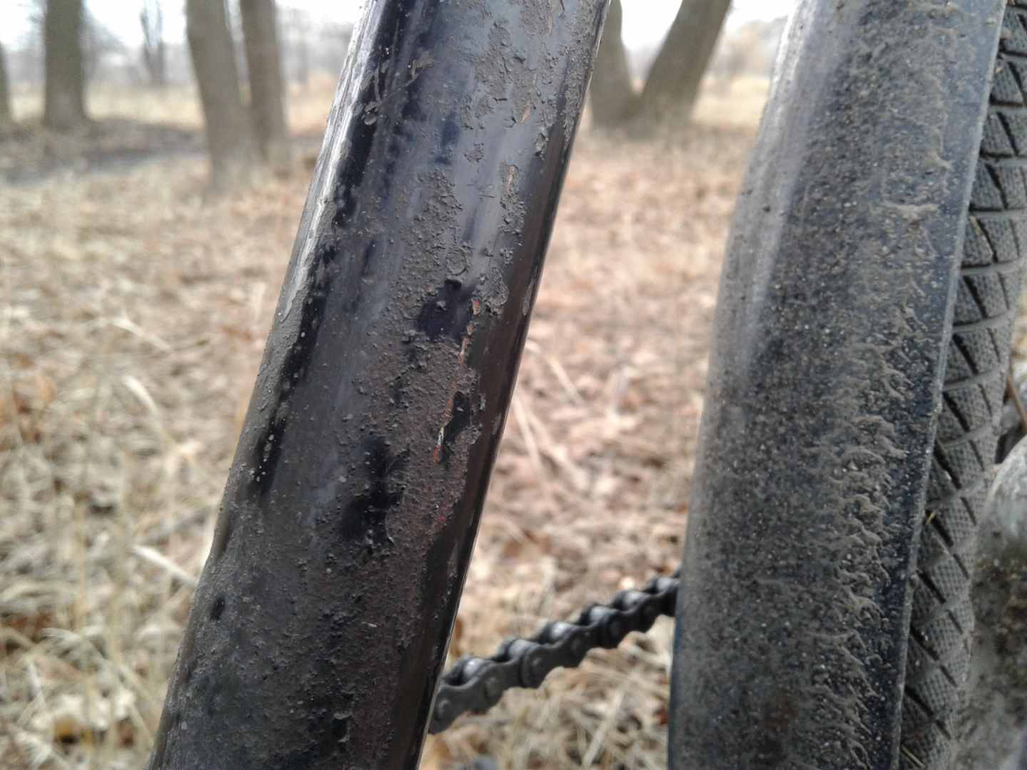 В конце концов когда ещё раскрывать преимущества синглспид трансмисии как не по такой погоде - жалко хрустеть мультиспидом всем этим песком. Одна проблема. Именно по грязи ехать таки лучше на мультиспиде, ибо как только съезжаещь даже не на грунты а на размокшую обочину так сразу вязнешь, скорость и каденс падают драматически :smile: